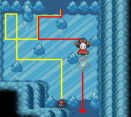 Caso você nunca tenha passado por aqui antes, use surf logo depois do menino gordo achará um item muito bom. Entre na caverna ali perto. Para subir as cachoeiras da caverna, use o a técnica Waterfall do HM 07. É uma caverna muito pequena. Ao sair da caverna, vá seguindo caminho pela direita, derrotando os treinadores. Se usar surf ao sul e atravessar o redemoinho, achará o treinador e o item. Por aqui vemos Doduo nos matinhos, além de Sandslash em HeartGold e Arbok em SoulSilver. Há chance de aparecer Dodrio também em SoulSilver. Siga o caminho a seguir rumo ao norte, lutando com os treinadores. Logo achará uma casa onde pode recuperar seus Pokémon. Por aqui encontramos os mesmos Pokémon, porém agora há chance de aparecer Dodrio apenas em HeartGold.